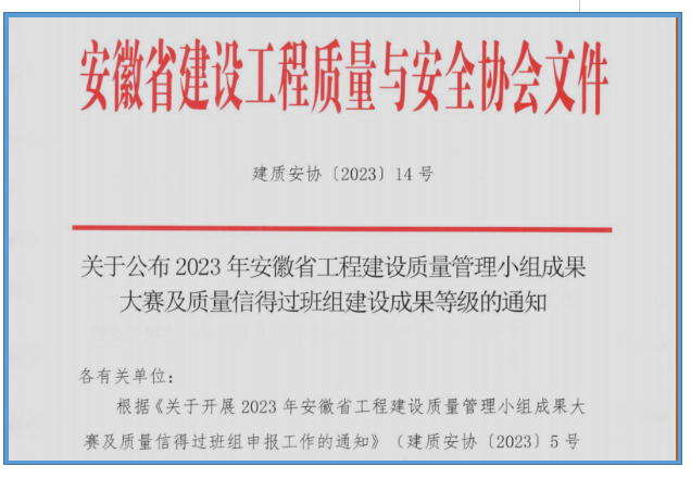 近日,安徽省建设工程质量与安全协会发布了2023年安徽省工程建设质量管理小组活动评审结果,合肥路桥QC小组成果喜获佳绩,11项成果荣登榜单。