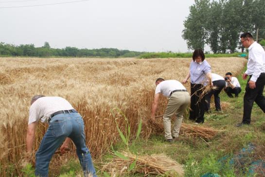 与此同时,在华丰村第一书记徐伟的带领下,20多名党员同志沿着合肥交投帮扶维修的双张路,步行参观了华丰村稻虾共养基地和在建的稻虾米加工厂。风吹麦浪、“丰”景如画,党员同志们深入一线,在当地村民的指导下,下田体验学习收割小麦,体验劳作的艰辛与收获的喜悦。在欢声笑语中,孩子们领到了合肥路桥支委精心准备的节日礼物,收获了节日的快乐。