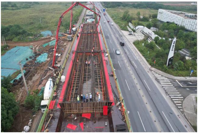 9月22日16时30分,G312合六路(肥西段)通航大道上跨桥首联箱梁底腹板顺利浇筑,这标志着该桥梁正式进入上部结构施工,项目实施进入新的阶段。