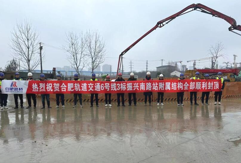 新春将近,年味愈浓,在项目全体建设人员的连日奋战下,2月2日,合肥路桥轨道交通6号线一期土建施工总承包3标振兴南路站附属结构全部顺利封顶,至此振兴南路站主体及附属工程建设全部完成。