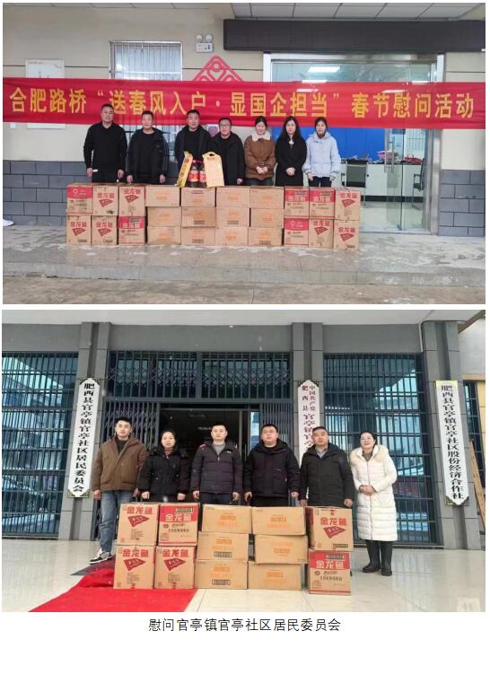 寒辞去冬雪,暖带入春风。新春将近,为感谢属地村委对项目建设的支持与帮助,合肥路桥G312合六路(肥西段)项目部组织开展“送春风入户·显国企担当”春节慰问活动,向施工断面各属地村委会送去新春祝福。